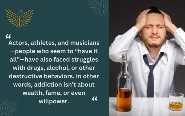 It’s easy to assume that addiction only happens to people in difficult circumstances, but celebrity stories prove otherwise. Actors, athletes, and musicians—people who seem to “have it all”—have also faced struggles with drugs, alcohol, or other destructive behaviors. In other words, addiction isn’t about wealth, fame, or even willpower.