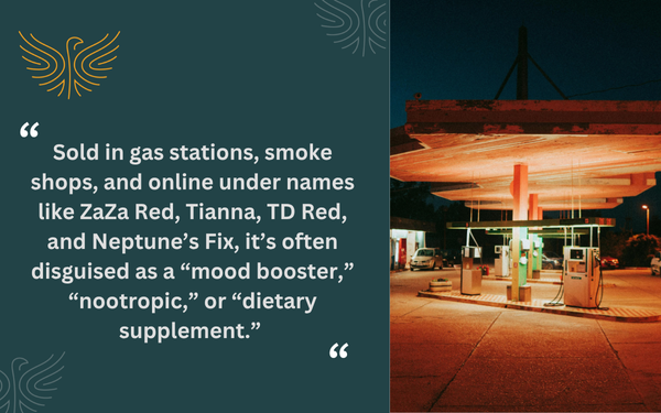 In recent years, tianeptine has reemerged in the United States under a far more troubling identity. Sold in gas stations, smoke shops, and online under names like ZaZa Red, Tianna, TD Red, and Neptune’s Fix, it’s often disguised as a “mood booster,” “nootropic,” or “dietary supplement.”